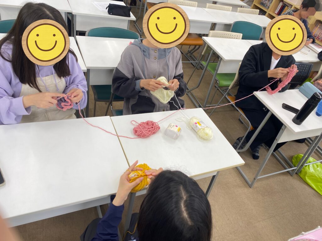 クラフト部に新しい新入部員が入ってきました!今までは全員女性でしたが、男性が入ってきてくれて、かぎ針を使わずに手で編み出すという新しい風を吹かせてくれてます(^∇^)ひとつの毛糸をみんなで仲良く編む姿が微笑ましいですね♩男女問わずクラフト部の加入お待ちしてます!